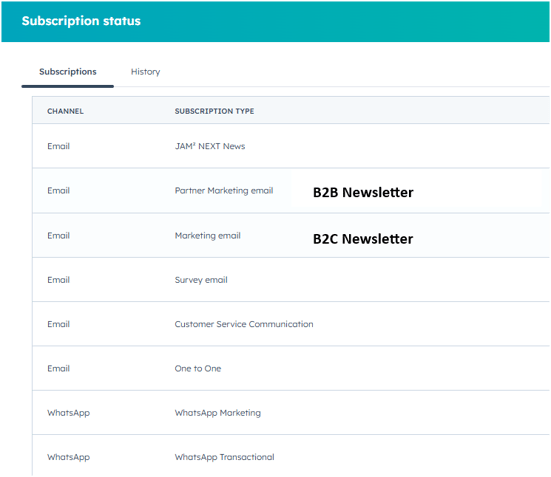 Here you can see at contact level which newsletter the customer has subscribed to.