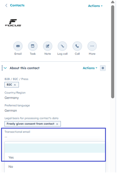In this case, please update the corresponding property. If the customer is to receive information about quality, recalls, or similar topics, set the contact-level property to YES.